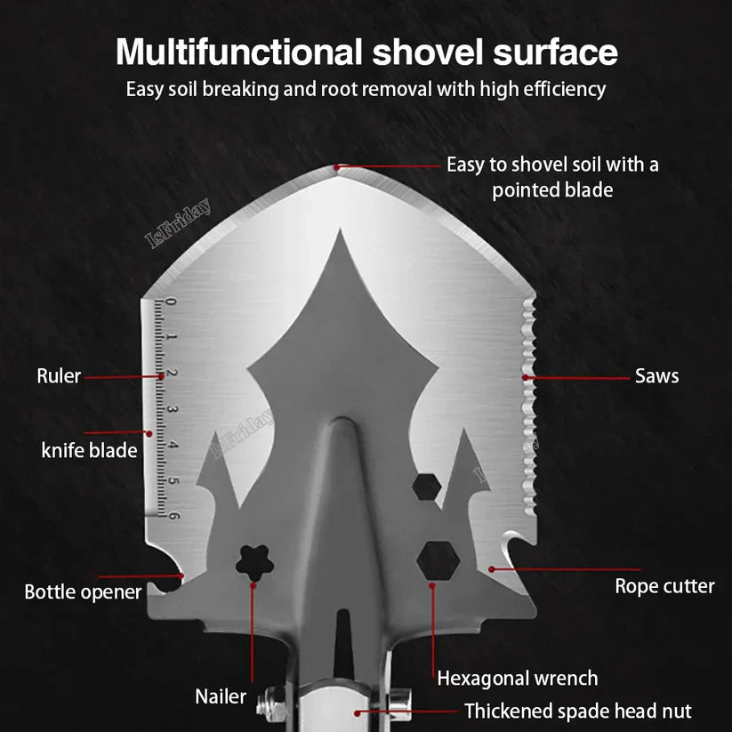 - Versatile Shovel Tool: Not just a shovel! It also functions as a saw, axe, hoe, and more.